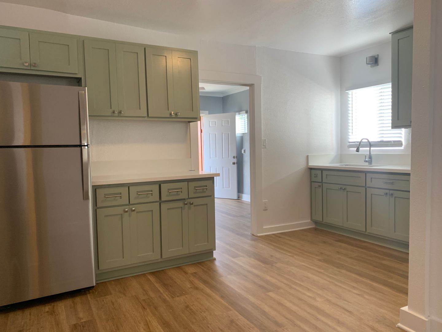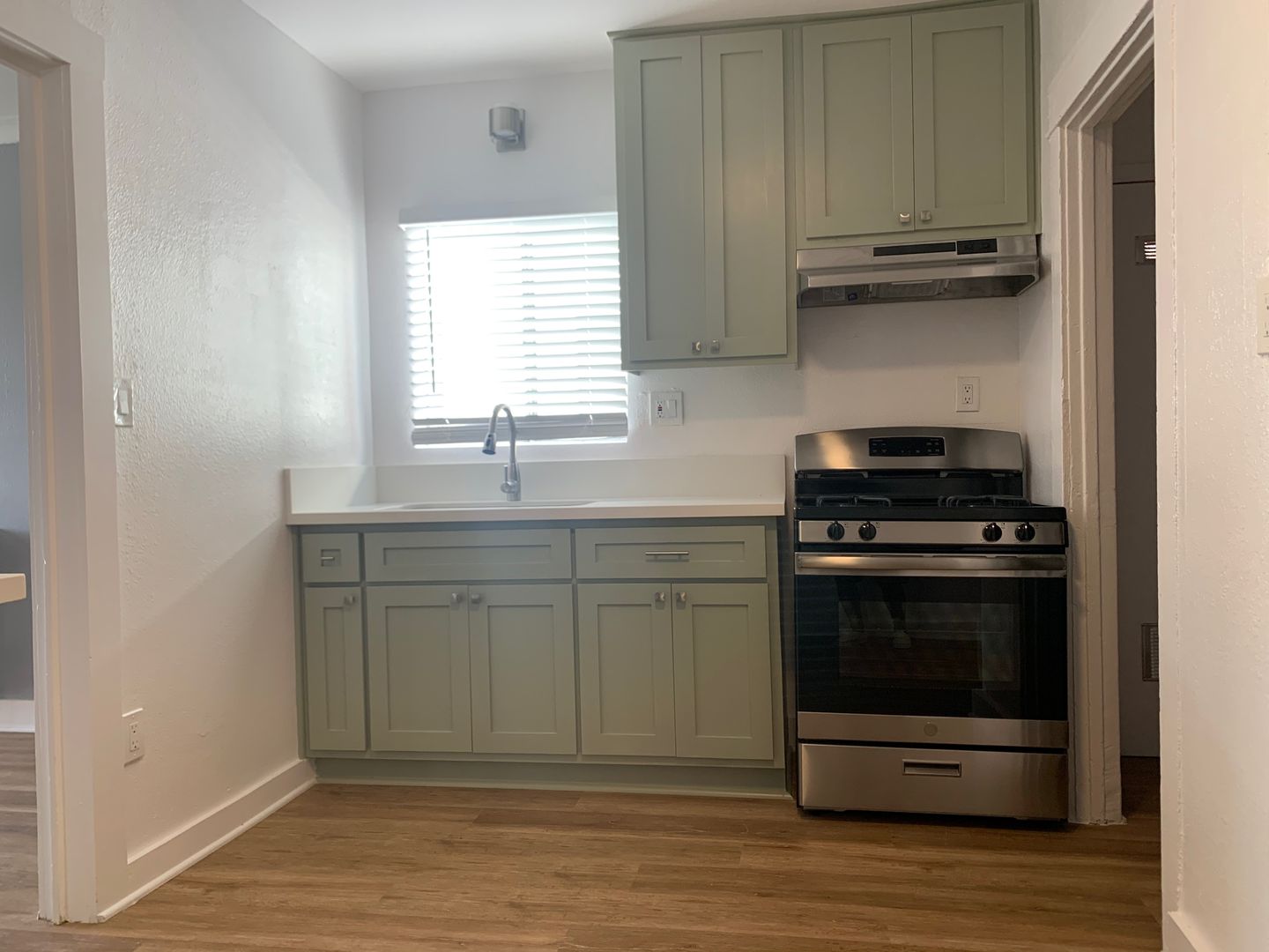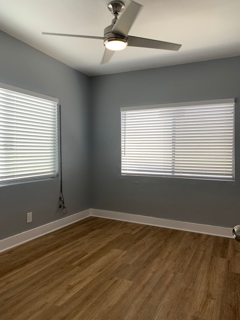 This unit is a beautiful one bedroom bungalow. The apartment has been completely remodeled! The building is pet friendly and professionally managed. Great for entertaining friends and family. This apartment has new laminated floors, freshly painted, new blinds, modern ceiling fan, back patio, modern bathroom, completely new kitchen and new stainless steel appliances both refrigerator and stove! Secured entry! Must be seen to be appreciated!